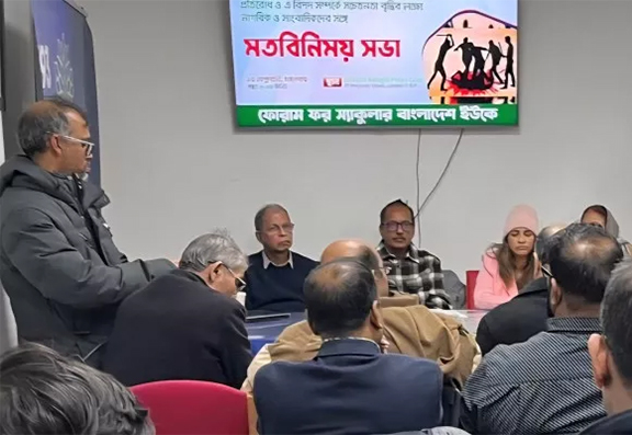 মঙ্গলবার (১০ ফেব্রুয়ারি ২০২৬) পূর্ব লন্ডনের লন্ডন বাংলা প্রেস ক্লাবে ‘ফোরাম ফর সেক্যুলার বাংলাদেশ’-এর আয়োজনে এই সভা অনুষ্ঠিত হয়। সভায় বক্তারা বলেন, নির্বাচন সামনে রেখে ধর্মীয় সংখ্যালঘু সম্প্রদায়ের নিরাপত্তা নিয়ে উদ্বেগ বাড়ছে। আন্তর্জাতিক ও স্থানীয় মানবাধিকার সংস্থার প্রতিবেদনে হিন্দু সম্প্রদায়ের বিরুদ্ধে লক্ষ্যভিত্তিক হামলা, ভয়ভীতি প্রদর্শন ও বাস্তুচ্যুত করার প্রবণতার কথা উঠে এসেছে, যা নির্বাচন-পরবর্তী সাম্প্রদায়িক সহিংসতার ঝুঁকির ইঙ্গিত দেয়।