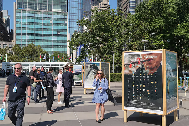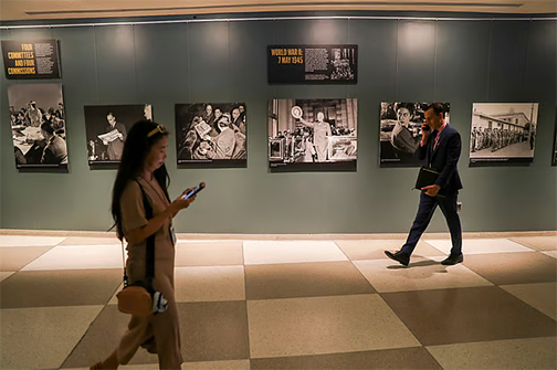 সাজিয়ে রাখা হয়েছে দ্বিতীয় বিশ্বযুদ্ধ নিয়ে জাতিসংঘের সদর দপ্তরে আলোচনার সময় তোলা ছবি