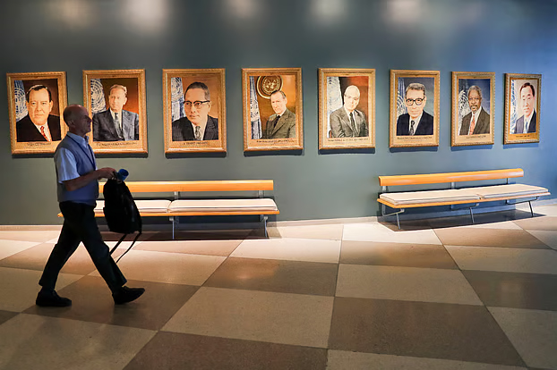 সদর দপ্তরের ভেতরে জাতিসংঘের বিভিন্ন সময়ের মহাসচিবদের ছবি