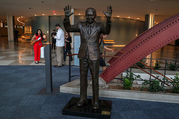 জাতিসংঘের সদর দপ্তর ভবনের ভেতরে নেলসন ম্যান্ডেলার ভাস্কর্য