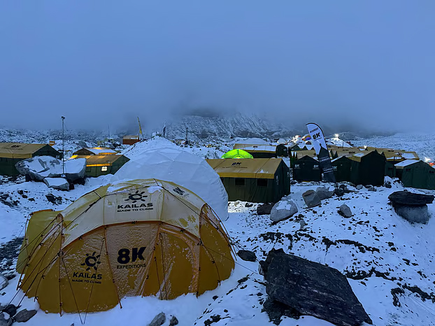 বরফে মোড়া এসব তাঁবুতেই পর্বতারোহীদের দিন কাটে