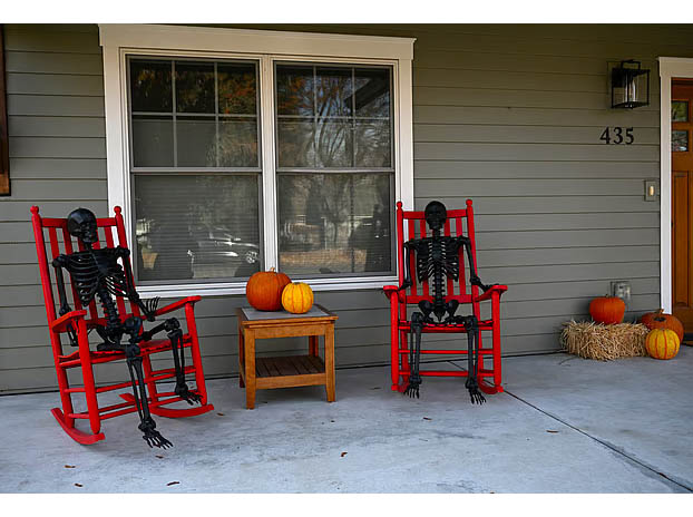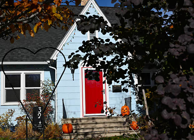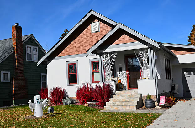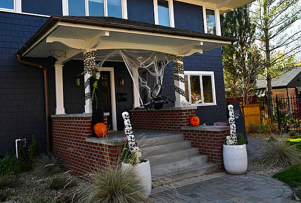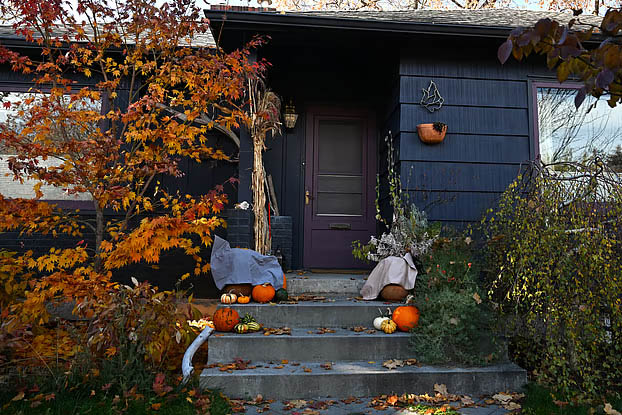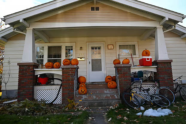 মিজুলার এক বাড়ির বারান্দা জুড়ে হ্যালোইনের কুমড়ো প্রদর্শনী।