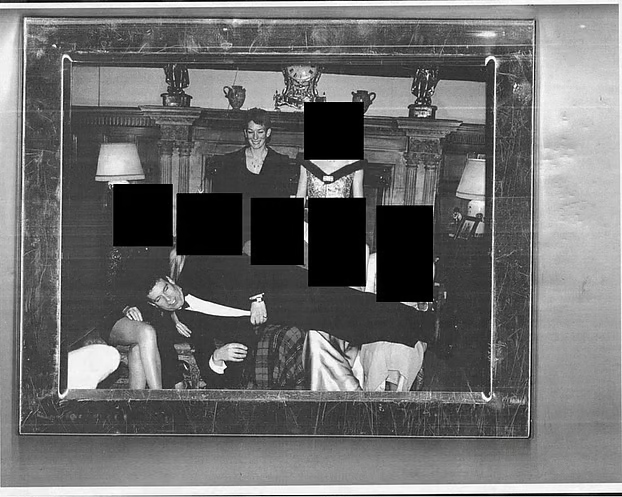 আংশিকভাবে মুছে দেওয়া একটি ছবিতে জেফরি এপস্টেইনের বান্ধবী গিলেন ম্যাক্সওয়েল ও যুক্তরাজ্যের সাবেক প্রিন্স অ্যান্ড্রু। তাঁকে কারও কোলে শুয়ে থাকতে দেখা যায়।