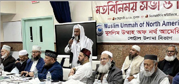 মতবিনিময় সভায় সভাপতিত্ব করেন এবং স্বাগত বক্তব্য রাখেন মুনা’র সেন্টাল উলামা বিভাগের সভাপতি ড. রুহুল আমীন। নিউইয়র্কের অর্ধ শতাধিক মসজিদের ইমাম সহ শতাধিক ইমাম-ওলামা অংশ নেন। শুরুতে পবিত্র কোরআন থেকে তেলাওয়াত করেন হাফিজ রাহাত ইকবাল। এরপর কী নোট স্পীকারের বক্তব্য রাখেন মুনা’র ন্যাশনাল প্রেসিডেন্ট ইমাম দেলোয়ার হোসাইন। সভায় আলোচনায় অংশ নেন ইমাম আশরাফুজ্জামান খান ছাড়াও মুনার সাবেক ন্যাশনাল প্রেসিডেন্ট আবু আহমদ নূরুজ্জামান ও হানুর-অর রশীদ, ন্যাশনাল এক্সিকিউটিভ ডাইরেক্টর আরমান চৌধুরী, অধ্যাপক ড. আকরাম পাশা, ঢাকাস্থ জাতীয় মসজিদ বায়তুল মোকাররমের সাবেক খতিব মাওলানা রফিক আহমেদ, শায়েখ আব্দুর রহিম, ড. হাফিজ মুফতি আনসারুল করীম আজহারী, মাওলানা সাঈদুর রহমান খান, মাওলানা মুহাম্মদ ইয়ামীন, মুফতি আব্দুল মালেক, মাওলানা জাকারিয়া মাহমুদ, মাওলানা ফয়সাল আহমেদ জালালী, ইমাম জফির আলী, মাওলানা আহমেদুল হক, মাওলানা রফিক আহমদ রেফাহী, অধ্যাপক মাওলানা শহীদুল্লাহ, মওলানা লুৎফর রহমান কাশিমী, মাওলানা মঞ্জুরুল করীম সহ আরো অনেকে। সভা পরিচলনা করেন মুনা’র এসিসটেন্ট ন্যাশনাল এক্সিকিউটিভ ডাইরেক্টর আহমদ আবু ওবায়দা।