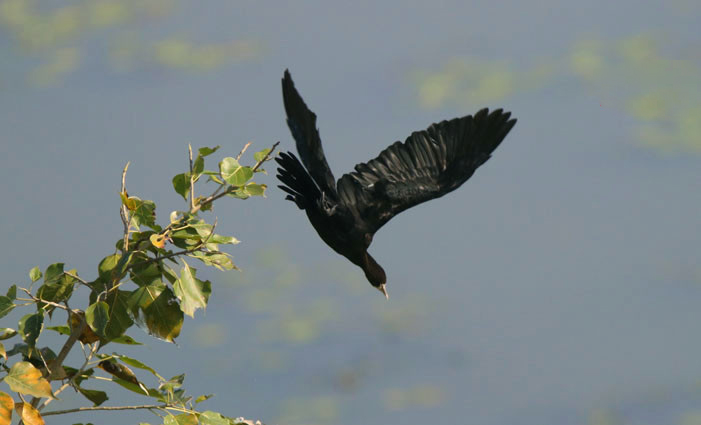 খাবারের সন্ধানে দেশি পানকৌড়ির অন্যত্র ছুটে যাওয়ার উড়ন্ত সৌন্দর্য