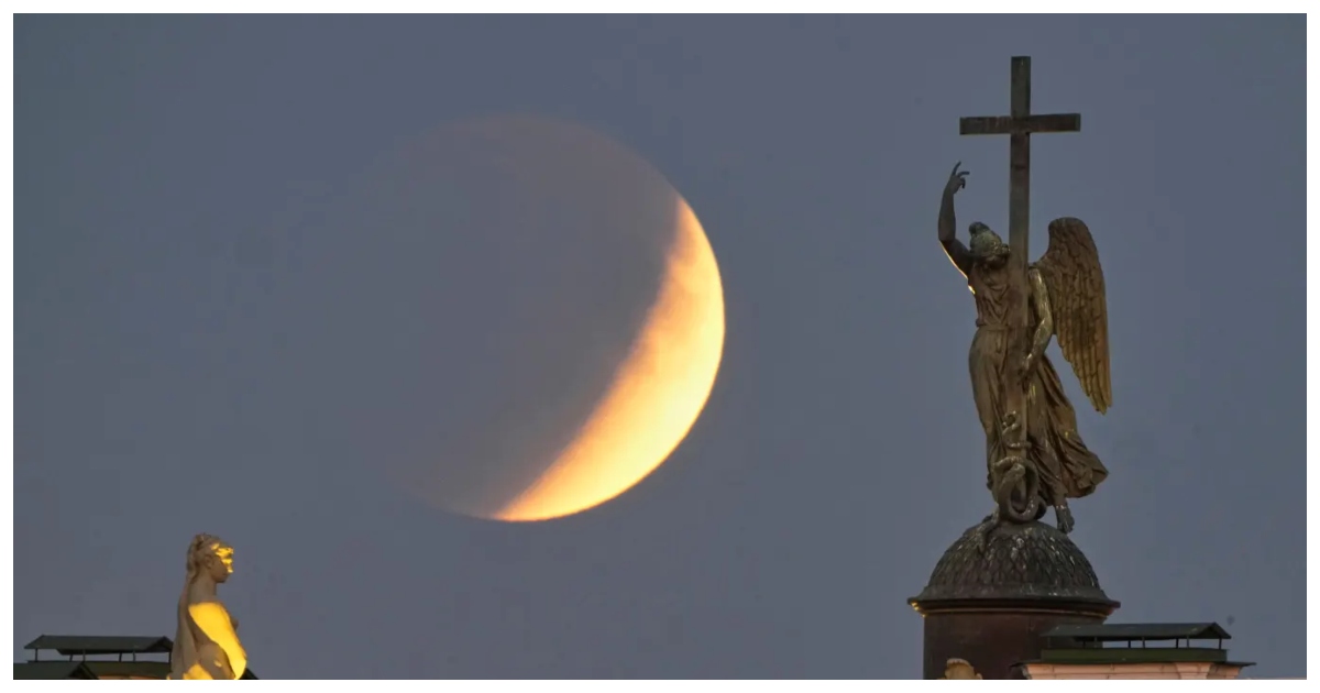 রাশিয়ার সেন্ট পিটার্সবার্গ থেকে তোলা ছবিতে চন্দ্রগ্রহণ