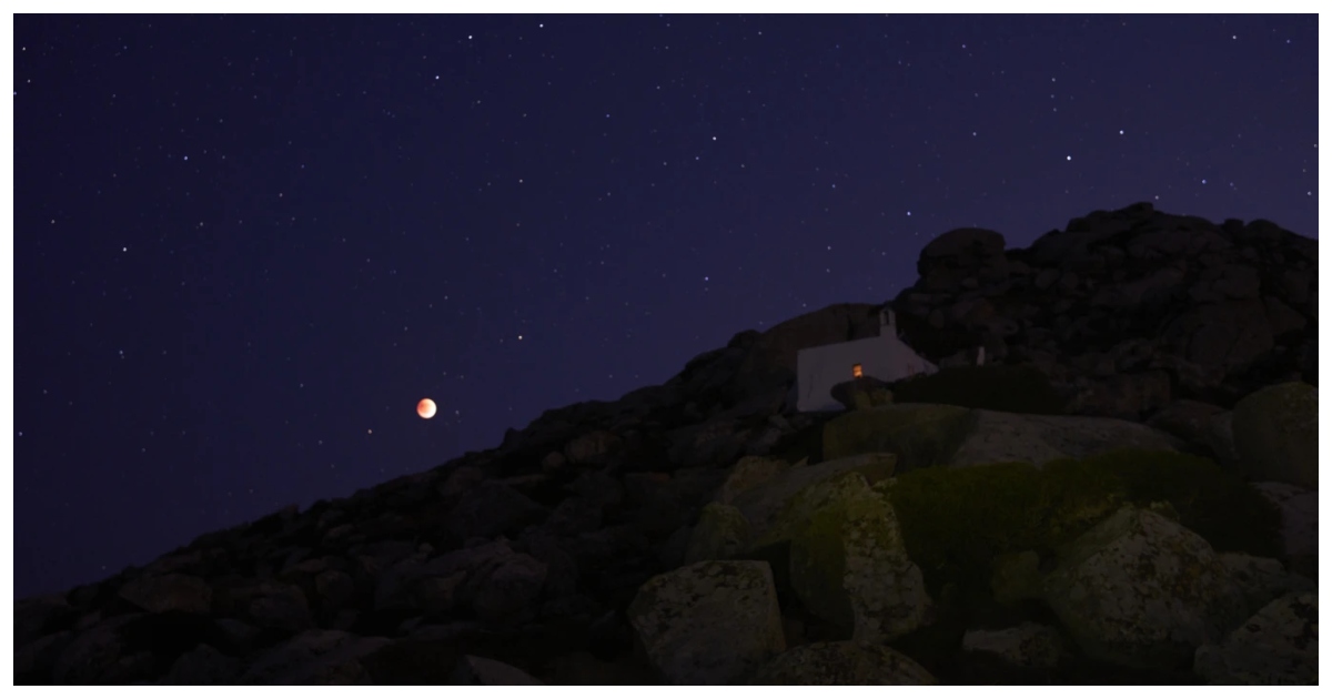 গ্রিসের টিনোস দ্বীপের ভোলাক্স গ্রাম থেকে রক্তিম চাঁদ