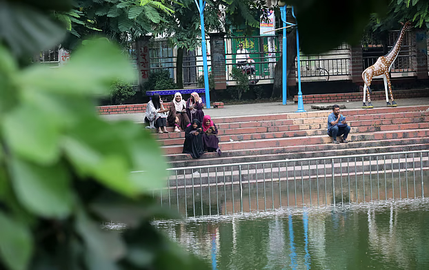 পার্কে বসে চলে নানা আলোচনা।