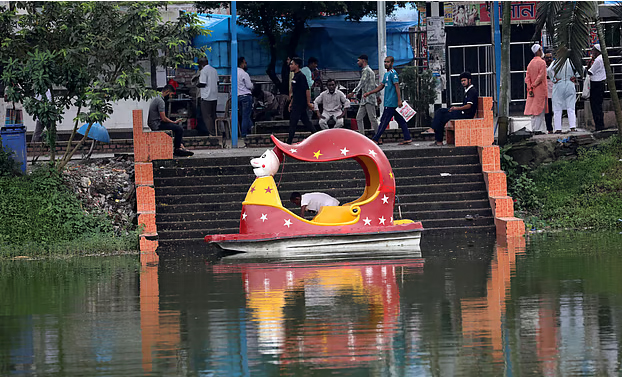 পার্কের ঘাটে ভাসছে রঙিন নৌকা।